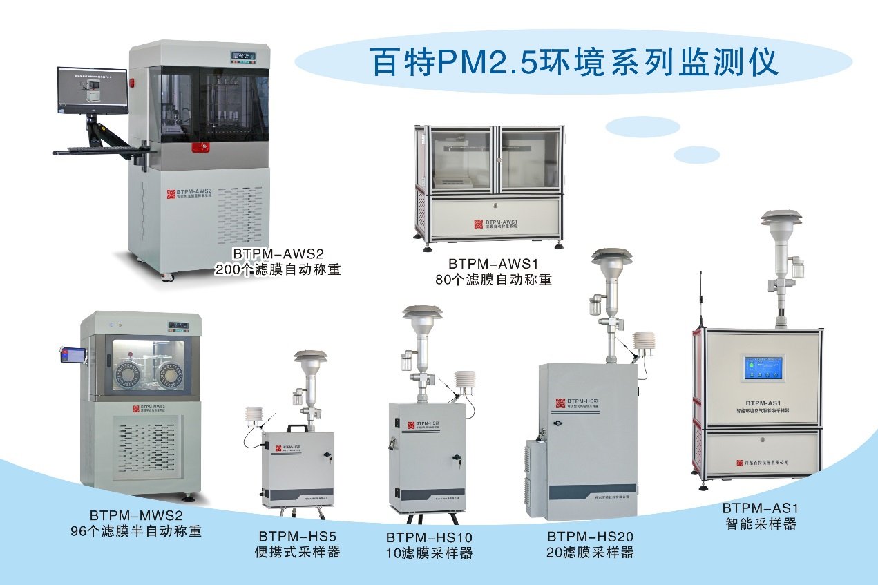 百特的环境空气监测仪器包括基准法PM2.5&PM10自动监测系统、多滤膜标准采样器、滤膜自动称重系统等。产品具有智能化程度高、操作简便、坚固耐用、适应面广等突出特点,符合HJ656、HJ836等国家标准。其中基准法PM2.5&PM10自动监测系统集采、称、传于一体,填补国内外空白,主要性能指标达到国际水平。